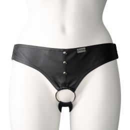 De brede, verstelbare banden spannen zich om je heupen en zilveren, metalen gespen en studs voegen erotiek toe aan de zwarte kunstleren jockstrap. De ring aan de voorkant omarmt je lid, zodat het vrij en bloot te bewonderen is, terwijl aan de achterzijde je billen verleidelijk lonken.