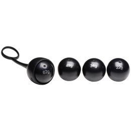 Begin met de lichtste van de vier oplopende gewichten en plaats de bal in de houder. Rek de eikelring uit en schuif deze achter de top van je eikel. Voorkom wrijving met een klein beetje glijmiddel op waterbasis. Gebruik niet te veel, anders gaat de ring glijden.