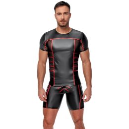 Het rekbare wetlook materiaal en de mesh details aan de zijkanten zorgen voor een onweerstaanbare look, of je nu een privéfeestje wilt opleuken of een echte blikvanger wilt zijn in de club.