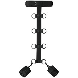 Het harnas heeft een verstelbare halsband met een riem die naar beneden aansluit, waar je de boeien op 4 verschillende niveaus kunt bevestigen via twee ringen, één aan elke kant van de riem. De mogelijkheden voor stoute spelletjes zijn eindeloos, omdat je de armen zowel aan de voor- als aan de achterkant kunt bevestigen.