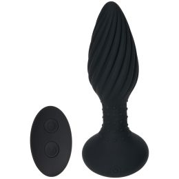 Bereid je voor wat anaal glijmiddel op waterbasis op de plug en breng de taps toelopende tip in. Geniet van het soepele glijden, terwijl de wervelende groeven je van binnen stimuleren. Land veilig op de basis met noppen, waarin kralen roteren om jou zo een rimmend gevoel te geven. Pak de afstandsbediening erbij en voeg de laatste vibrerende touch toe.