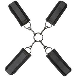 De set bestaat uit twee verstelbare handboeien, twee verstelbare enkelboeien en een bevestigingsring om de boeien aan te bevestigen met de meegeleverde karabijnhaken.
