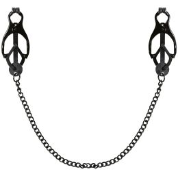 De decoratieve, geketende zwart metalen klemmen trakteren je op een stevige grip voor opwindende pijn. Geniet van het kinky uitzicht op je tepels en het gewicht van de ketting die je lichaam siert.