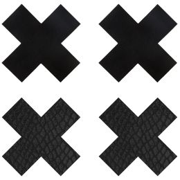 Deze kinky zwarte kruisjes zijn zelfklevend, waardoor ze gemakkelijk over de tepels te plaatsen zijn.