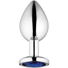 Laat je kontje twinkelen van genot, vul het met de Blue Jewel buttplug van Sinful. De slanke metalen plug heeft een bevredigende tussenmaat en een glanzende basis die je achterste bekroond.