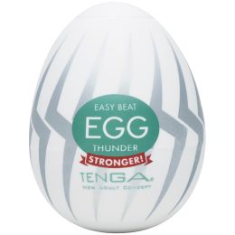 De TENGA Egg Thunder is een flexibele masturbator voor mannen met een interieur dat "donderend" prikkelt en een structuur heeft van ribbels en spleten. De Thunder is onderdeel van de STRONGER-serie waarbij het materiaal dikker is en een steviger gevoel geeft.